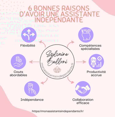 6. Collaboration efficace 🤝 : Les assistantes indépendantes peuvent travailler en étroite collaboration avec vous pour atteindre vos objectifs. Ils peuvent être une source d'inspiration, de soutien et de motivation tout en vous aidant à gérer les tâches quotidiennes.